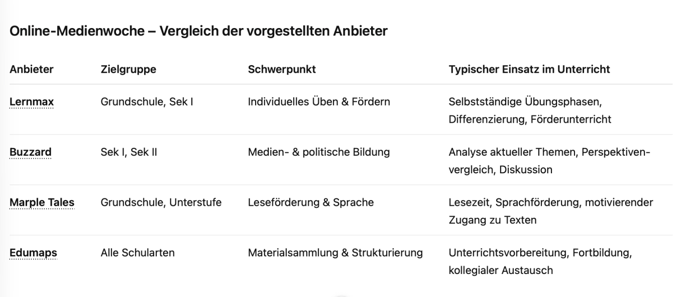 Online-Medienwoche – beteiligte Medienanbieter (Kurzvorstellung)